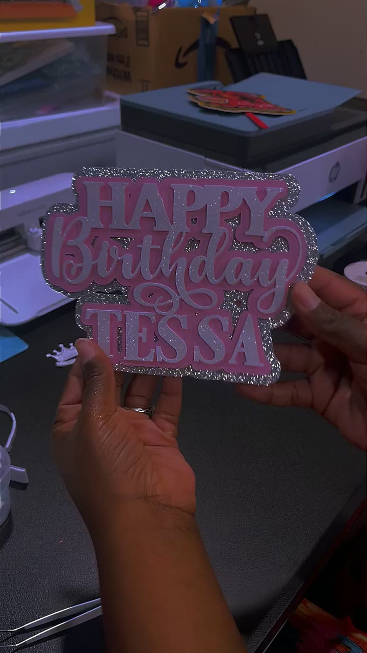 "Enhance your desserts with our exquisite Custom Toppers. Each one individually crafted for your special occasion, these toppers add a touch of elegance and luxury to your cakes and cupcakes. Elevate your dessert experience with our personalized toppers."