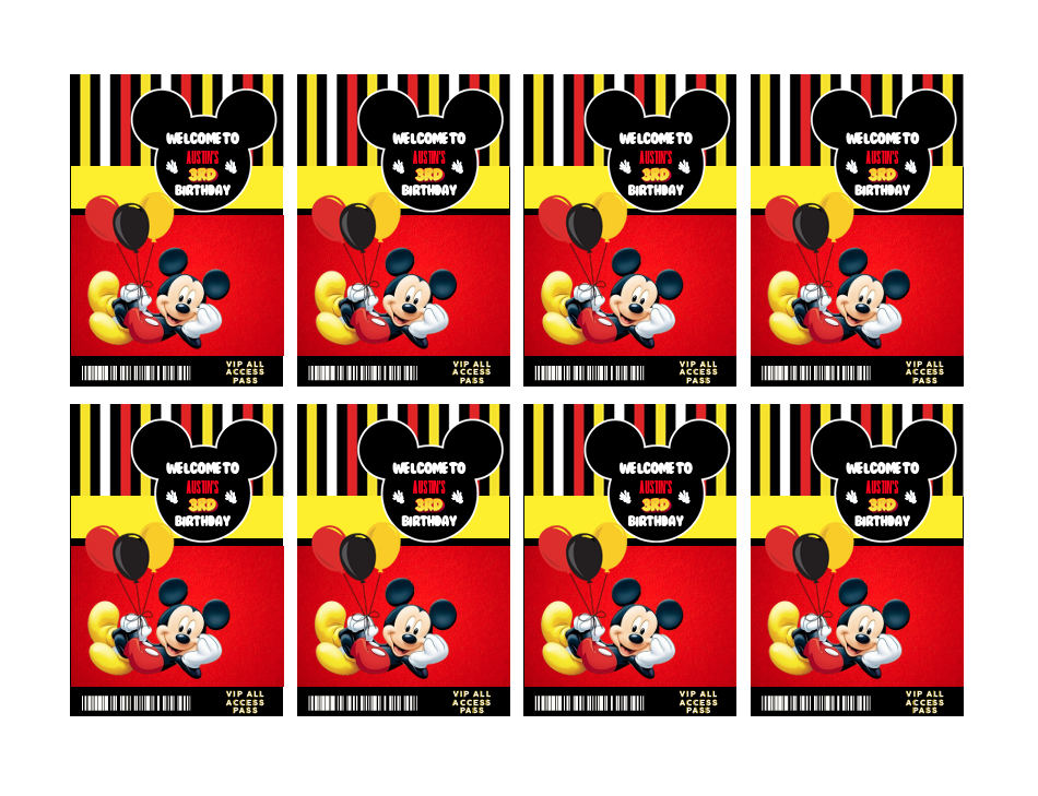 Mickey Mouse ID Badges - VIP Party Badge, All Access Birthday Party Favor, Self-Editing | D.I.Y. Editable Text INSTANT Download Printable
